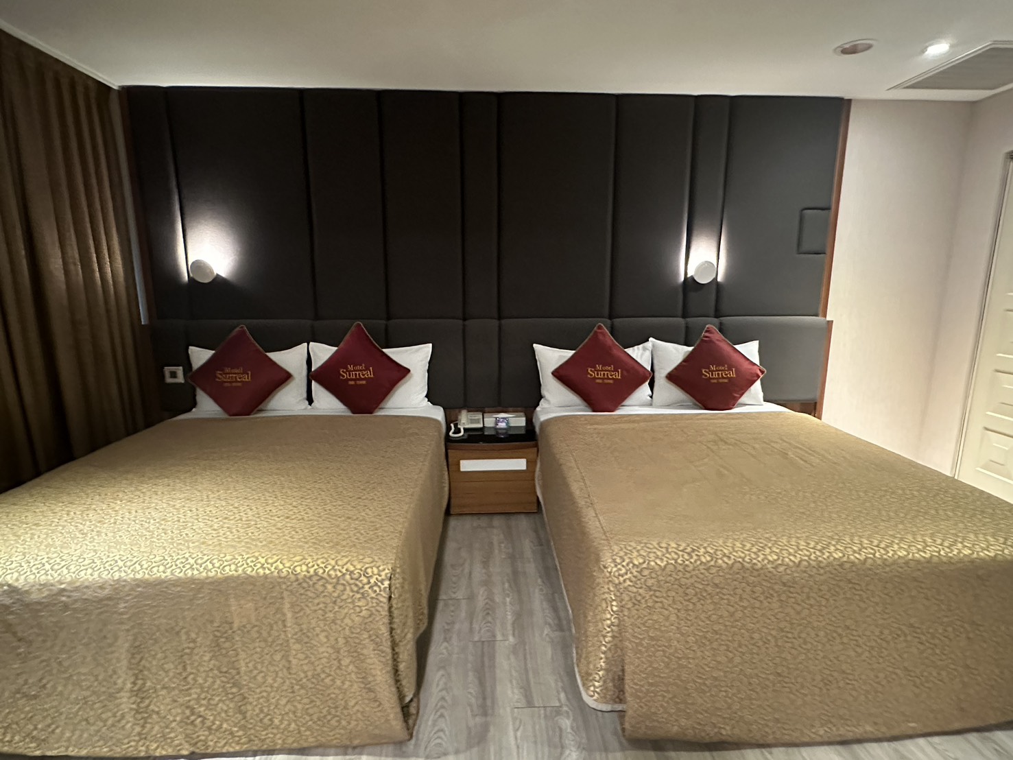 【客房設施】 *二大床/按摩浴缸/提供早餐餐券限額-AM6:30~AM11:00至配合早餐店用餐/每間客房皆有獨立調節控溫裝置/42吋LED液晶TV/VOD隨選電影/多媒體整合面板/免費有線+WIFI無線網路/冰箱 / 咖啡杯組 / 熱水快煮壺/吹風機/淋浴間乾溼分離/免費礦源水+咖啡+茶包+餅乾